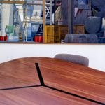 This dining room table is a real eye catcher, made to look as the legs are coming through the tabletop, creating depth and structural curiosity. Our clients loves this table and the look it achieves. It is made from French walnut with solid oak stain black legs.